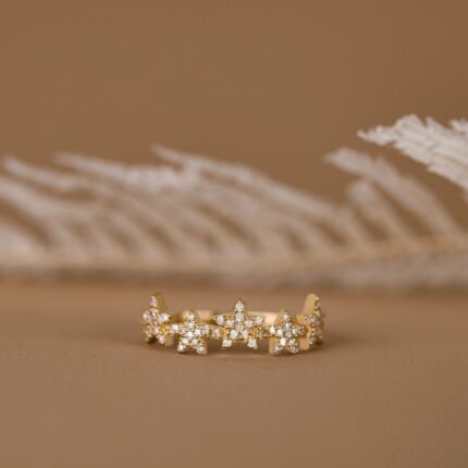 Multi-Star Ring in 14K Solid Gold with 0.23 ctw Natural Pave Diamonds. Celestial sparkle meets timeless elegance.