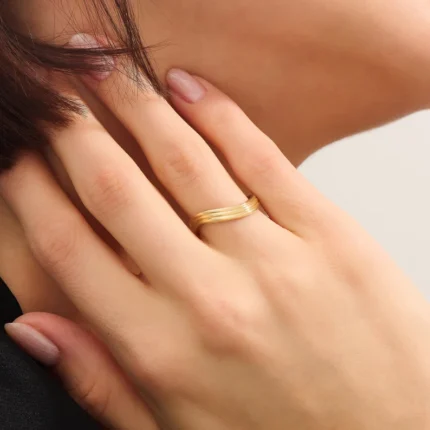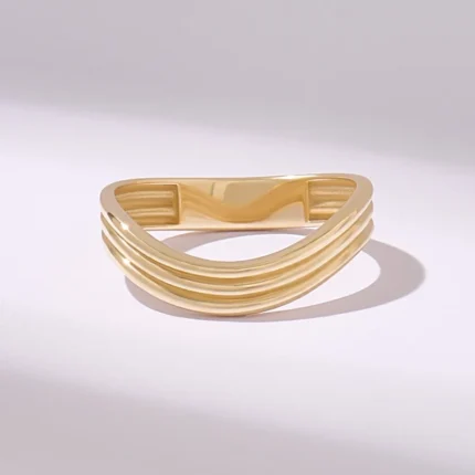 Stunning Wavy 14k Solid Gold Curved Band: Three Rows Stacking Rings for Women