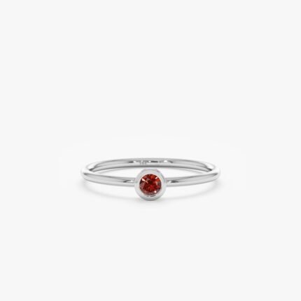 A striking 14K solid gold ring featuring a natural garnet in a sleek bezel setting, offering a bold and elegant addition to any jewelry collection.