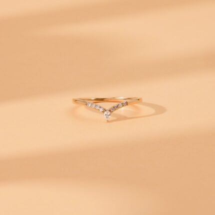 14K Gold Nesting Ring with 0.10ct natural pear and round diamonds. 1.5mm band width. GIA & BIS certified.