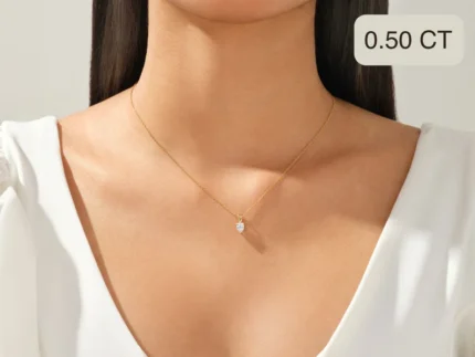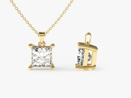 This 14K solid gold necklace features a 0.5 CT princess cut moissanite diamond solitaire—offering refined brilliance in a classic, elegant pendant design.