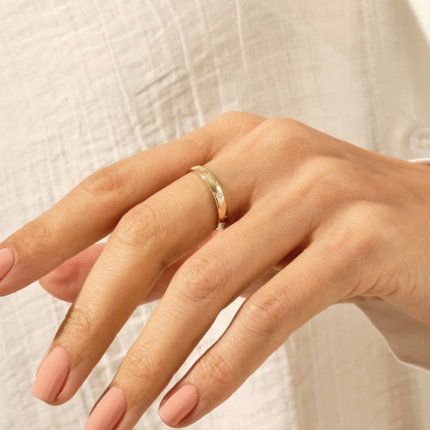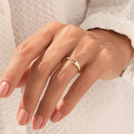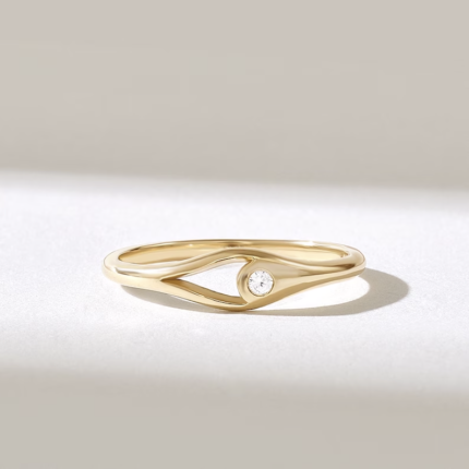 This 14K solid gold open bezel pinky ring features a sparkling moissanite diamond—an elegant and modern statement piece designed for standout sophistication.