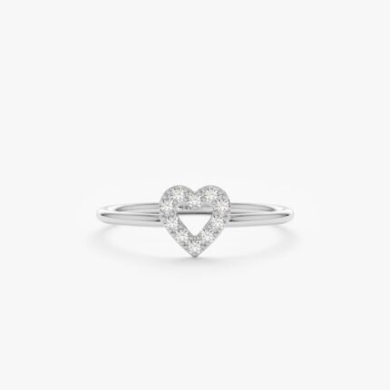 Delicate 14K gold heart ring featuring a 6.5 mm open-heart outline with 0.09 ctw natural diamonds in GH color and VS-SI clarity.