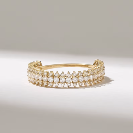 Crafted in 14K solid gold, this moissanite half eternity wedding ring radiates classic sparkle—perfect for women who love refined, timeless elegance.