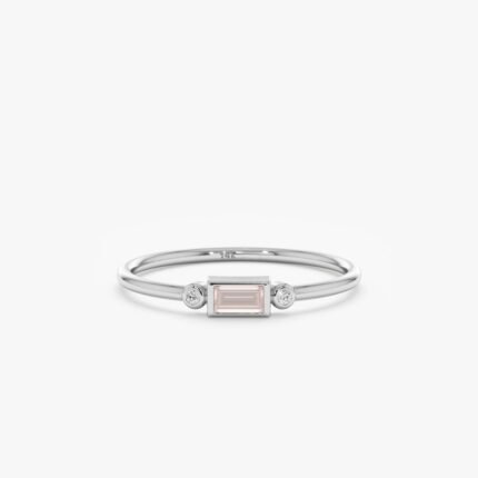 14K Gold Ring with 0.11 ct pear-shaped morganite and 0.02 ct GH/VS-SI diamonds. 1.2 mm band. GIA & BIS certified. Romantic and minimal.