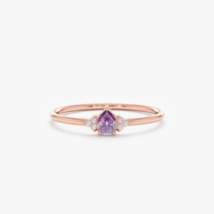 14K Solid Gold Amethyst Natural Diamond Engagement Ring