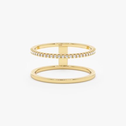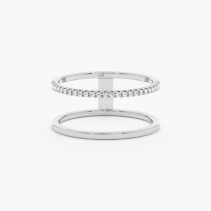 Modern 14K Gold Open Ring with one plain band and one diamond-studded band (0.07 ctw). Available in white, yellow, or rose gold.