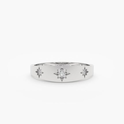 Wide Starburst Ring in 14K Solid Gold with 0.05 ctw natural diamonds. Features a bold celestial design, available in yellow, rose, or white gold.