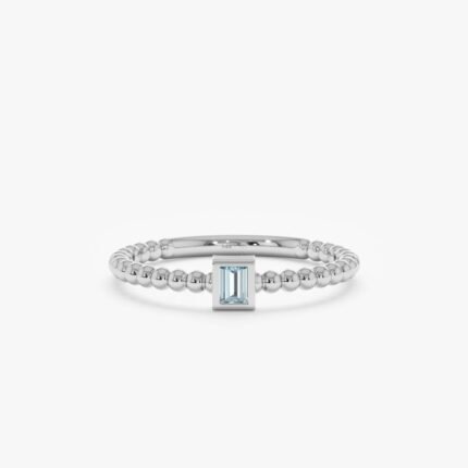 March Birthstone Aquamarine Ring In Solid Gold Beaded Design