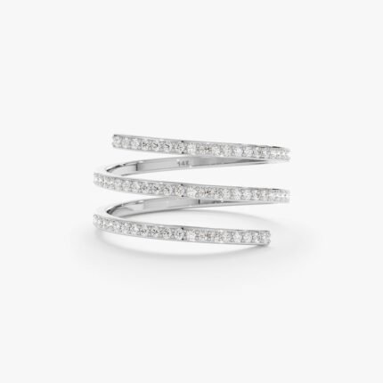 14K Solid Gold Natural Diamond Spiral Ring