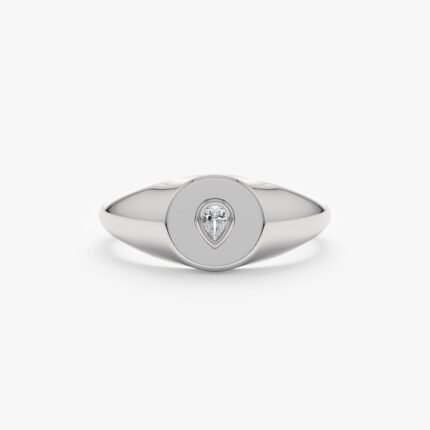 14K Solid Gold Pear Natural Diamond Signet Ring