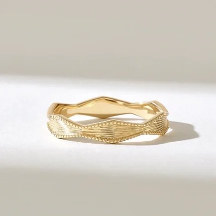 Wave Migraine Ring | 14k Solid Gold Rhombus Patterned Band | Wavy Marriage Ring