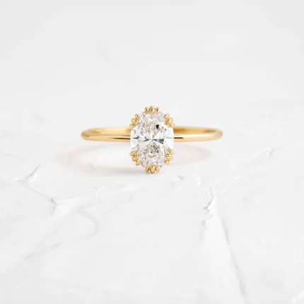 This threaded ring features a stunning oval-cut moissanite diamond set in a sleek, minimalist band — perfect for effortless elegance and everyday wear.