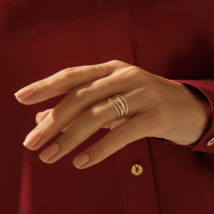 Wavy Rows Gold Ring: 18K Solid Gold Wire Statement Ring for Women