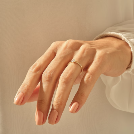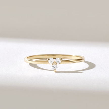 Delicate 14K gold trefoil promise ring with 0.06 ct GH VS-SI natural diamonds. Stackable, minimalist design. BIS Hallmarked & GIA certified.