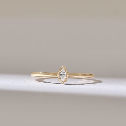 Tiny Marquise Diamond Solitaire Ring | 18K Solid Gold Solo Promise Ring