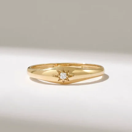 Tiny Star Signet Ring | 18K Solid Gold Pinky Ring | Pave Star Celestial Ring