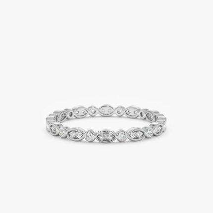 14K Gold Art Deco Eternity Ring with 0.22 ct GH/VS-SI diamonds. 2 mm wide band. GIA & BIS certified. Vintage elegance meets modern style.