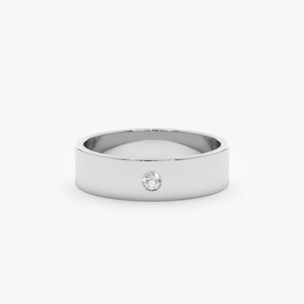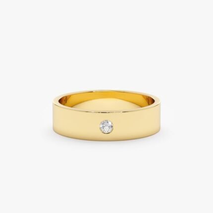 14K Gold Solitaire Wedding Band with 0.05 ct natural diamond (GH color, VS-SI clarity). 4.5 mm thick band. GIA & BIS certified. Classic and elegant.