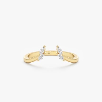 14K Gold Half Moon Nesting Ring with 0.11 ctw natural diamonds. Elegant curved design to stack with solitaires. GIA & BIS Certified.