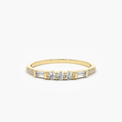 Stunning 14K solid gold ring featuring diamonds and baguette sapphires, blending elegance with a modern design for a sophisticated and timeless look.