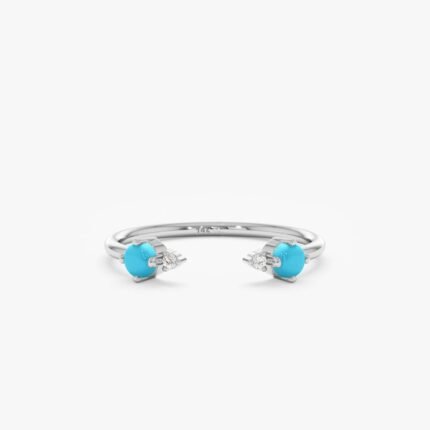 14K Solid Gold Natural Diamond and Turquoise Open Ring