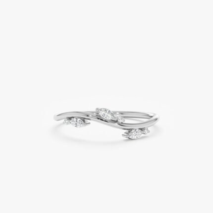 V-shaped nesting ring in 14K solid gold with 0.12 Ct natural diamonds. Ideal as a contour wedding band or stackable accent ring. GIA & BIS certified.