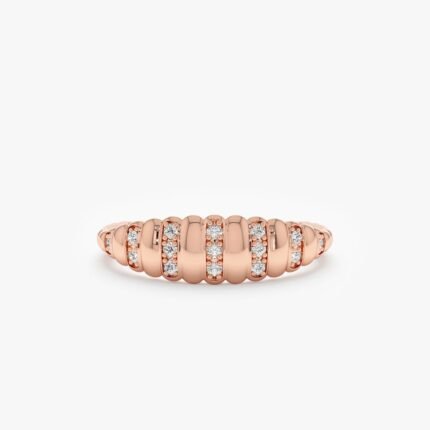 14K Solid Gold Natural Diamond Croissant Bubble Ring