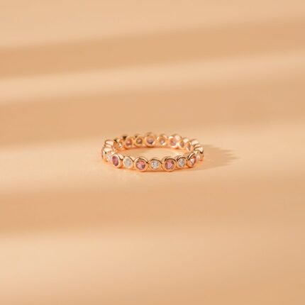 14K Solid Gold Pink Sapphire and Natural Diamond Eternity Band