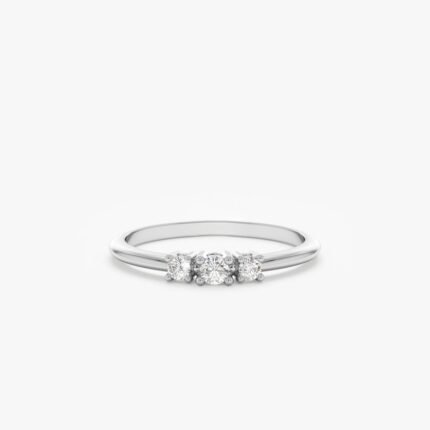 14K Solid Gold Three Natural Diamond Engagement Ring