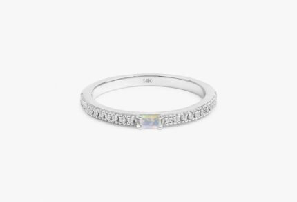 Illuminate your life with The Karat Store's Diamond and Baguette Opal Ring. Handcrafted in solid gold, it features natural diamonds and opal, offering a vibrant play of colours.