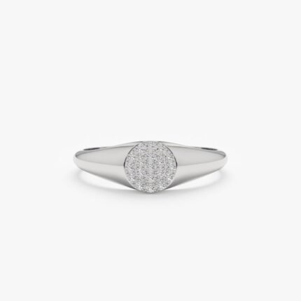 14K solid gold signet ring with 0.10 ct GIA-certified natural diamonds (G-H color, VS-SI clarity). Available in 3 gold tones. BIS Hallmarked.