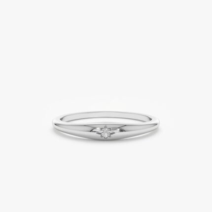 Handmade 14K gold dome ring with a 0.01 ct GH COLOR, VS-SI Clarity natural diamond. GIA certified, BIS hallmarked. Sleek and minimal.