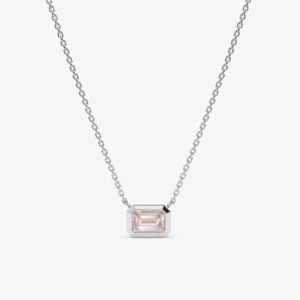 Experience tranquility with our Emerald Cut Rose Quartz Necklace. Handmade from solid gold, featuring a bold emerald-cut rose quartz for a unique and calming addition to your jewelry collection.
