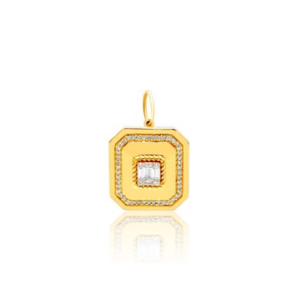 The 14K Gold Octagon Illusion Diamond Pendant, measuring 21mm, showcases a refined design with an illusion setting that enhances the diamond’s sparkle. This elegant pendant adds a touch of sophistication to any outfit, perfect for both casual and formal occasions.