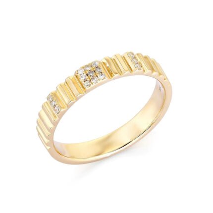 This 14K Gold Pave Diamond Textured Spaced Ring features 0.10 cts of lab-grown diamonds set in a distinctive spaced design with a textured finish. Expertly polished, it comes in a Karat Store Jewelry box, perfect for gifting or personal wear.