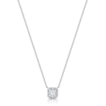 The 14K Gold Octagon Diamond Necklace features 0.32 cts of lab-grown diamonds in an octagon setting. This elegant piece, sold as a single, combines classic charm with modern design.