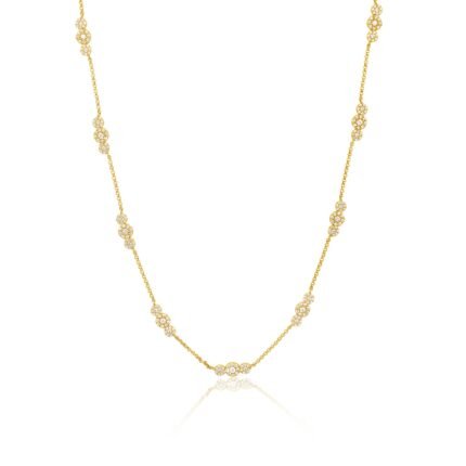 This Gold Pave Diamond Graduated Necklace features diamonds set in 14k Yellow Gold. Adjustable 15-18 inch Gold 4.23 grams Diamond