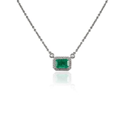 Elegant and radiant, this 18k solid gold chain necklace features a vivid emerald framed by a sparkling diamond halo—perfect for timeless allure.