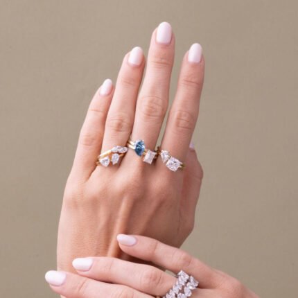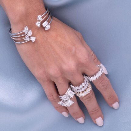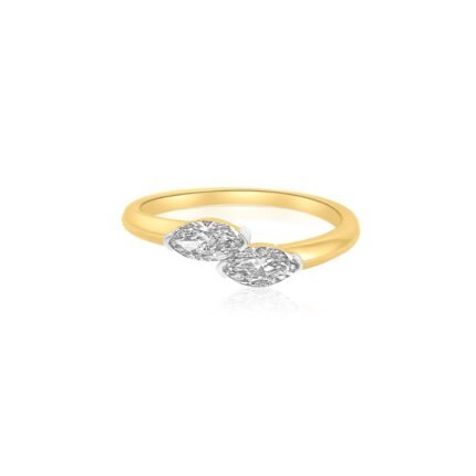 The 14K Gold Diamond Double Marquise Lab Grown Ring showcases 0.52 carats of lab-grown marquise-cut diamonds with VS1 clarity and F color. The unique double marquise setting creates a striking visual symmetry, blending modern design with timeless elegance.