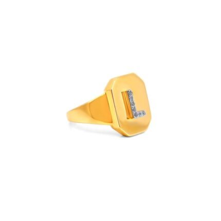The 14K Gold Diamond Initial Signet Ring showcases a custom initial encrusted with 0.09 ct of brilliant-cut lab-grown diamonds. Crafted from premium 14KT gold and polished to a high shine, this ring offers a blend of personalized elegance and luxury, making it perfect for daily wear or special occasions.