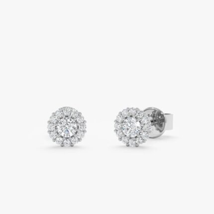 Our Classic Natural Diamond Halo Studs are a divine addition to your collection. Handcrafted with a halo of diamonds surrounding a captivating center stone, they exude timeless elegance.