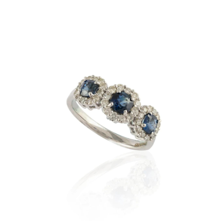 Elegant 14K solid gold trinity ring featuring sapphires and diamonds—crafted for symbolic beauty, radiant sparkle, and timeless sophistication.