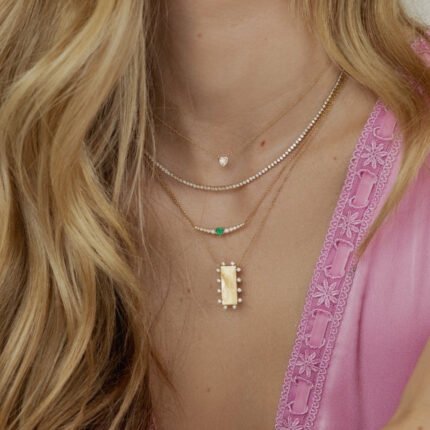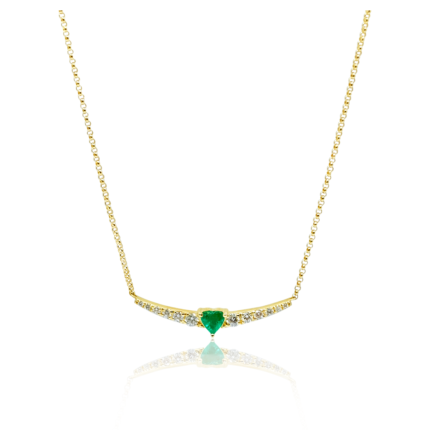 14K Solid Gold Bezel Heart Set Emerald Necklace