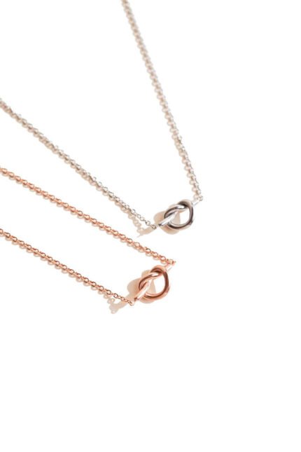 Elegant 14K solid gold "Love Me Knot" necklace, offering a meaningful and stylish design that makes a perfect statement of love and affection.