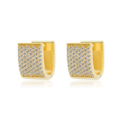 "Elegant 18k Gold Pave Moissanite Diamond Square Hoop Earring – a modern design with pave Moissanite diamonds for a bold and luxurious look."