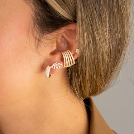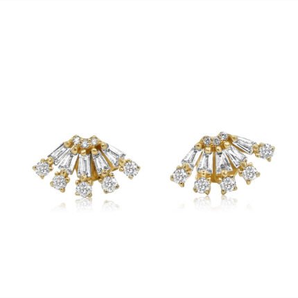 "Elegant 18k Gold Mini Moissanite Diamond Fan Earring – a stylish fan-shaped design with Moissanite diamonds, perfect for adding a sophisticated, radiant touch."