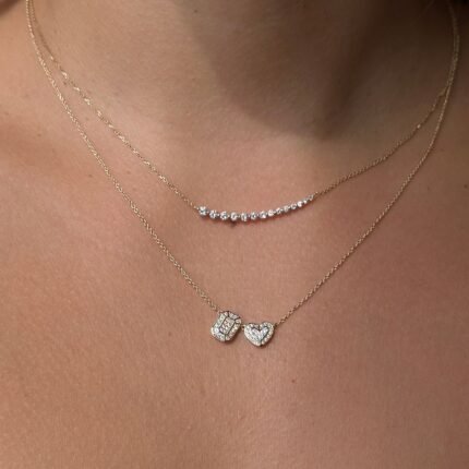 14K Gold Diamond Rectangle Octagon Heart Necklace