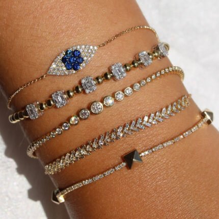 Elegant 14K gold bracelet with multiple trios of diamonds. Available in yellow, rose, or white gold.