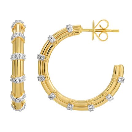 18k Gold Multi Moissanite Diamond Prong Large Hoop Earring